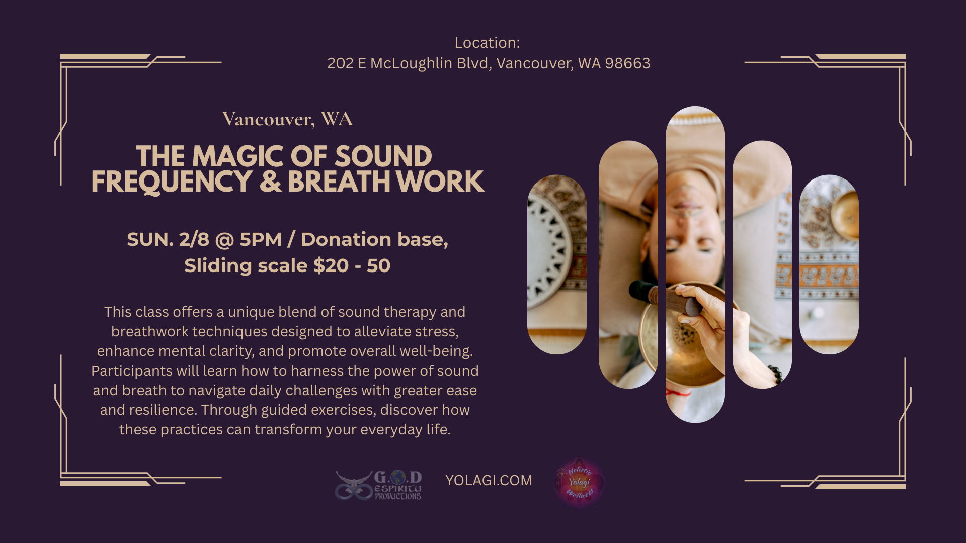 Join us for a class that will infuse Kundalini Prana Breathing with Mantras & Mudras to help alleviate stress, clear your energy, help to raise your Kundalini & restore the body. Based from Patanjali's Kundalini Practices.